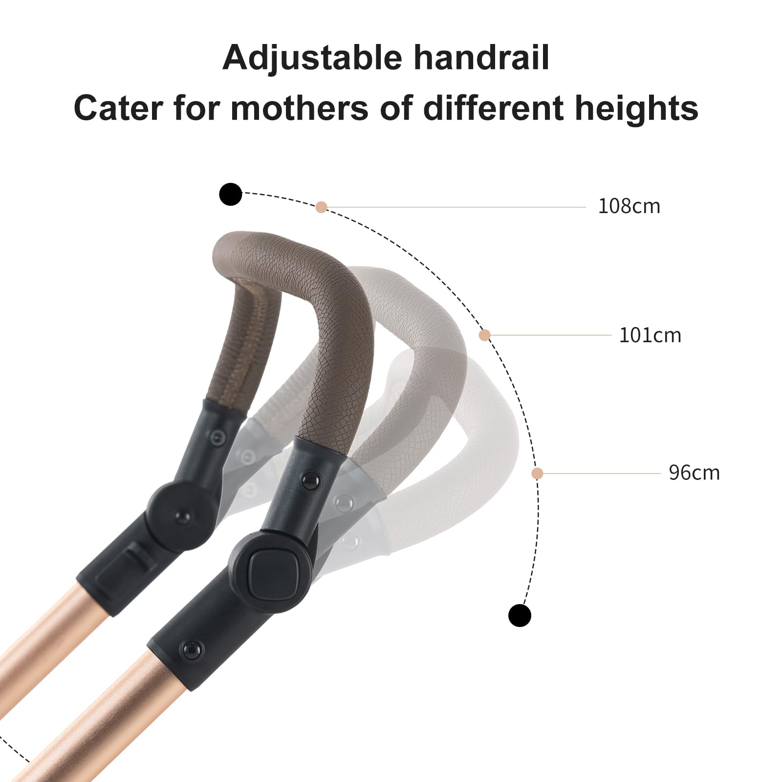 - El cochecito es adecuado para 0 a 15 meses y se puede convertir en un cochecito adecuado para 7 a 36 meses. El asiento se puede instalar en ambas direcciones. Cinturón de seguridad ajustable de cinco puntos. Hay tres modos de ajuste para la capota entera del cochecito: 135° Modo cochecito de bebé sentado, 150° Modo de descanso 180 °Modo cochecito horizontal.