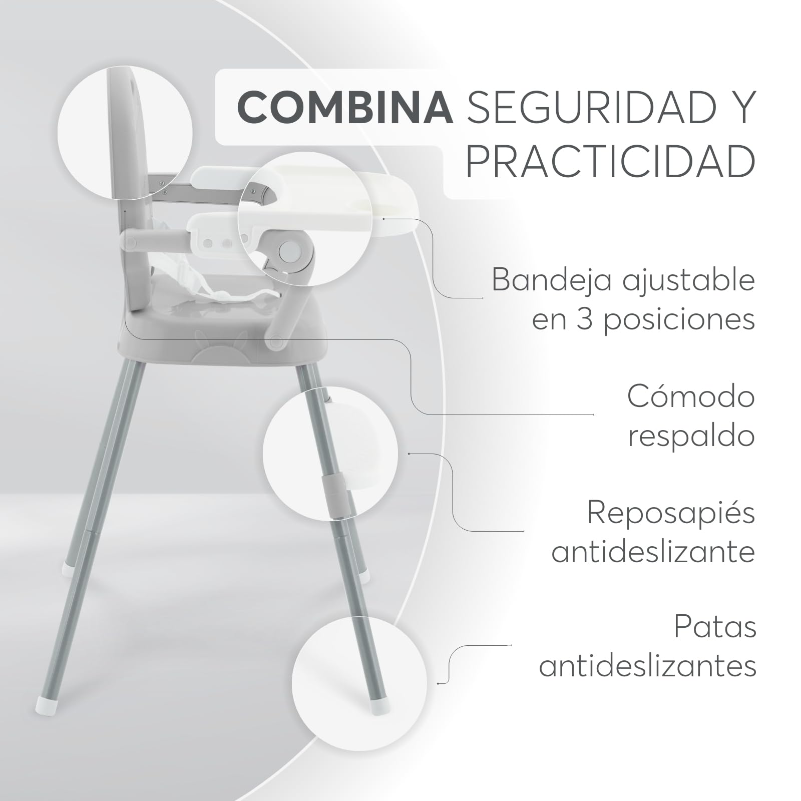 - SEGURIDAD: Equipada con un sistema de arnés seguro de 3 puntos y patas antideslizantes para mantener a tu hijo seguro y estable mientras está sentado