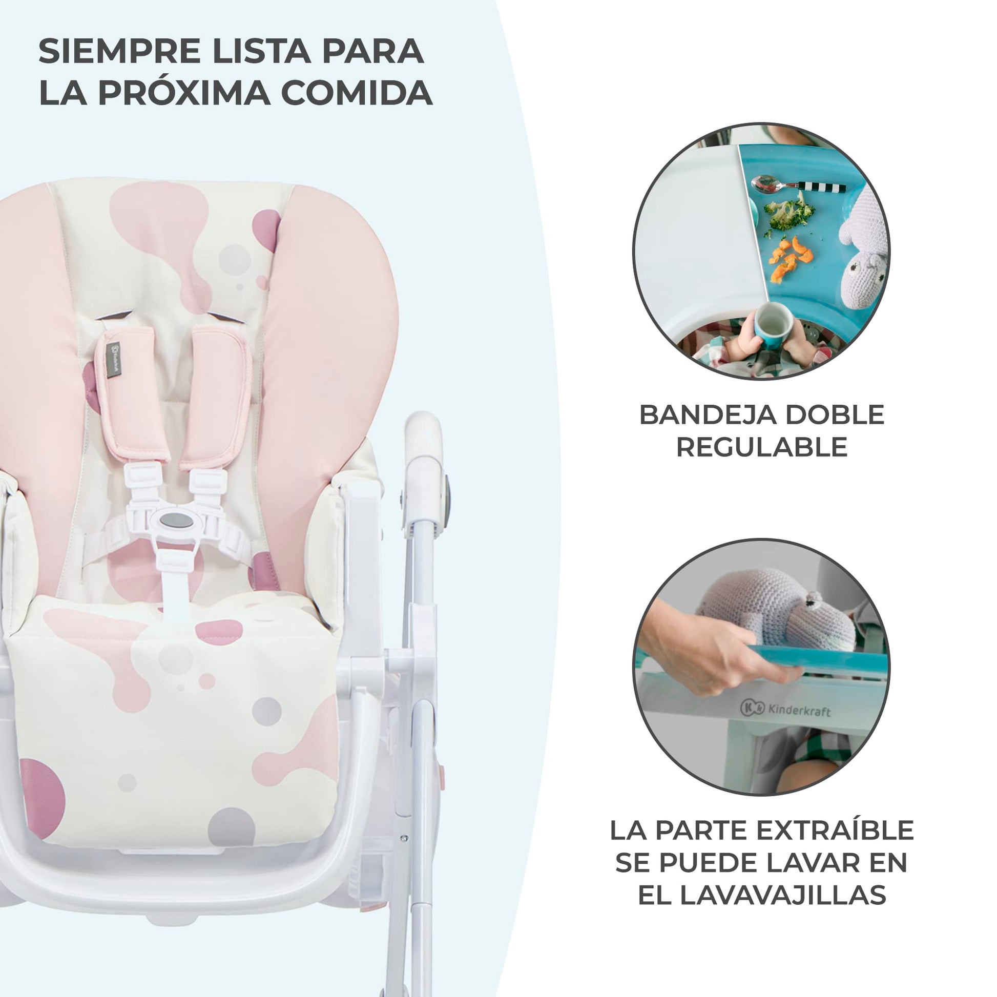 - ACCESORIOS: También posee una bandeja ajustable de doble cara que hace más fácil colocar al niño en la trona